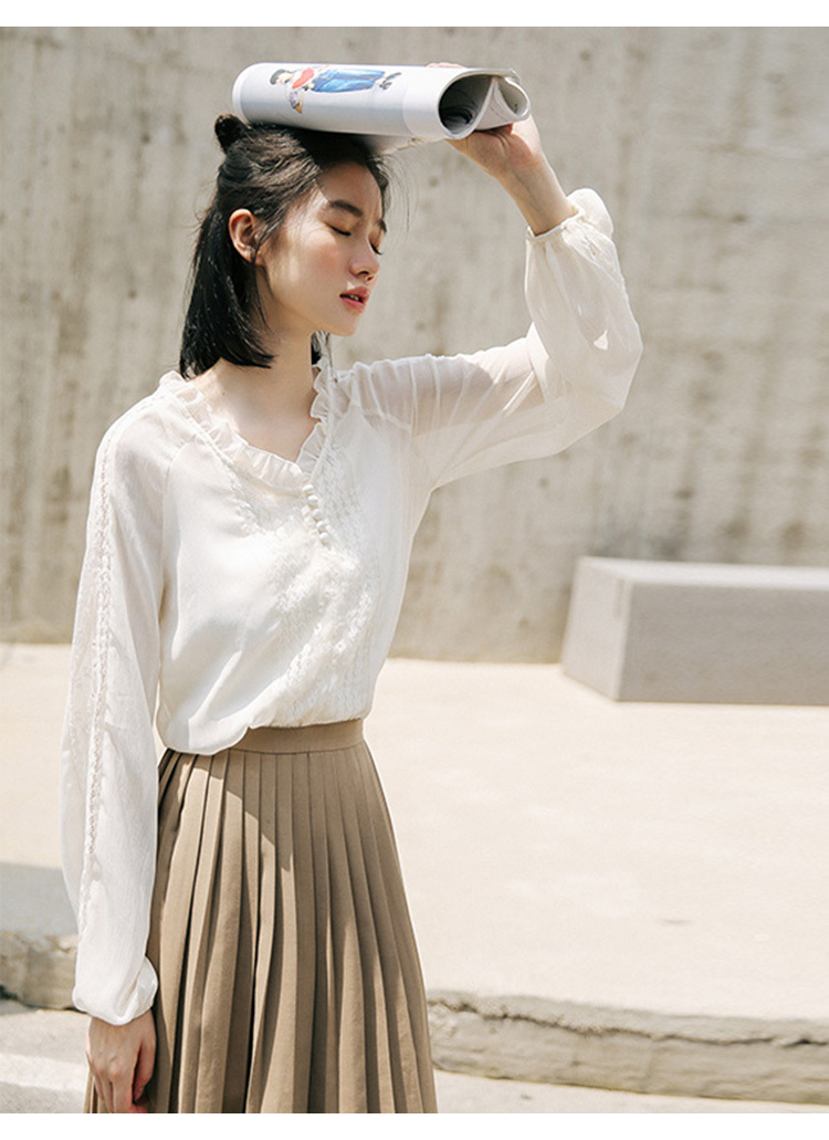 軽やかな素材感がフェミニンな、シンプルきれいなブラウスです。