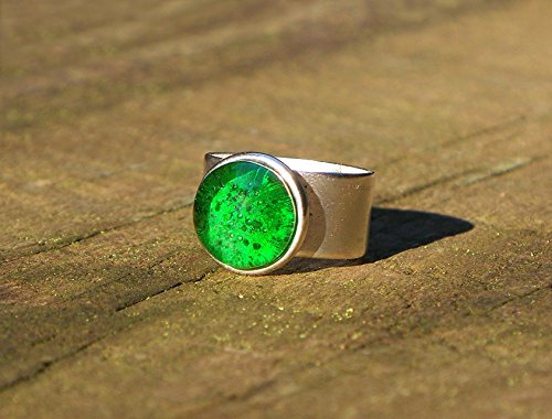 -. Title : Recycled Vintage Green Beer Bottle Glass Gem Adjustable Ring