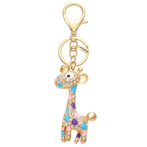 NOUMANDA Cute Animal Giraffe Crystal Keychain Bag Charm Keyring (gold)