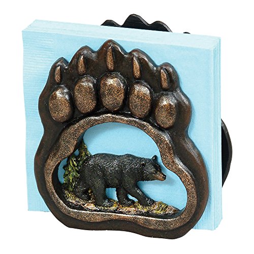 -. Title : Bear & Paw Lodge Napkin Holder - Rustic Kitchen Tableware