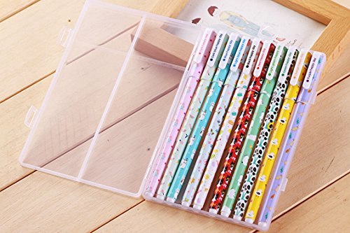 -. Feature : Material: Plastic / Pen Length: 15 cm / Set of 10 PCS, 0.38MM fine point roller ball pens.Ink color:10 different colors / Very cute ,useful and fasion;creative and interesting props to take with!beautiful and best gift of birthday christmas for your friend