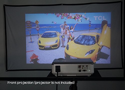 Specifications 1. Screen Size 88.5 inch x 50 inch (224.5cm x 127cm). Please take in account, because it is flexible material, projection material sizes may vary by /- 0.5" in length/width; 2. View size: 85.5 inch x 47.5inch (218cm x 121cm); 3. 100 inch; 4. Ratio: 16:9; 5. Material: 100% Polyester. 6. 6 eyeholes on the screen, with 6 pieces peel-and-stick hooks, to make it easy to set up.
