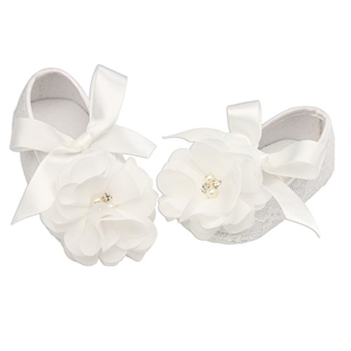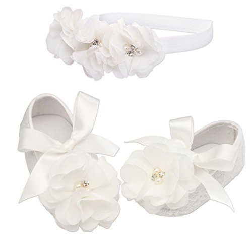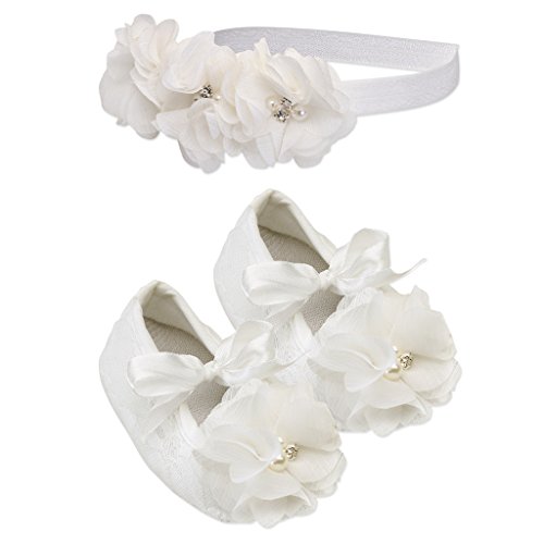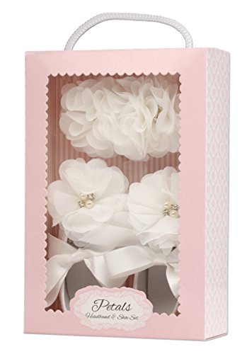 "Petals" Ivory Lace Baptism Christening Shoe and Headband Set for Baby Girl (Size 1)