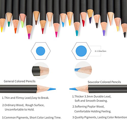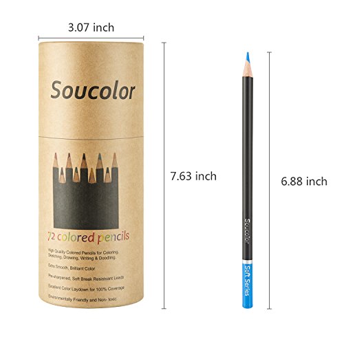 Soucolor 72-color Colored Pencils, Soft Core, Art Coloring Drawing Pencils for Adult Coloring Book, Sketch,Crafting Projects