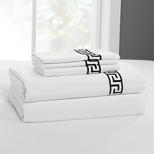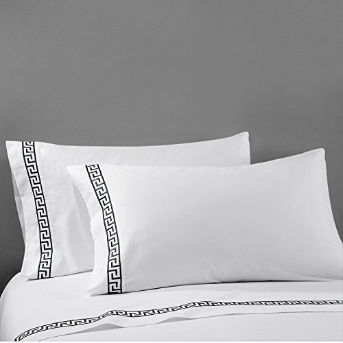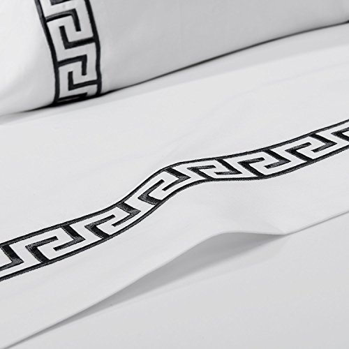 Simple&Opulence 100% Cotton 400 Thread Count Embroidery Sheet Set (King, Black)