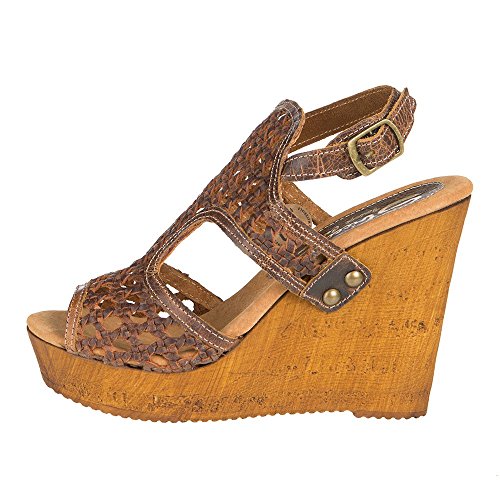 Product DescriptionCut out woven sandal on wedge with back strap0