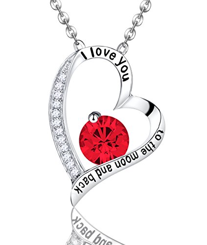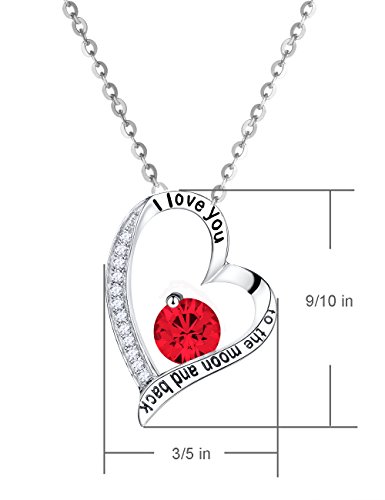 -. Feature : ♥ QUALITY COMES FIRST: Heart and moon Necklace engraved with "I love You to The Moon and Back" design,18K White Gold over Sterling Silver pendant with 18" rolo Chain and adjustable 1"-2" necklace extender, / ♥A BEAUTIFUL PIECE FOR EVERY WOMAN: Ruby Swarovski Necklace great July Birthstone setting in The elegant design and shining sterling silver necklace, the perfect choice for any occasion. Fashionable and with a luxurious touch, you can wear it daily or in special events and impress everyone with your unique style. / ♥GIFT IDEA FOR WOMEN and GIRLS ♥ Comes in a fine gift box. No wrapping needed. Perfect gift for Birthday, Anniversary Day, Valentines Day and Birthday gift for wife, mom, grandma and girlfriend. Treat yourself or some special to this stunning necklace / ♥STAND OUT IN STYLE♥: The exquisite silver color and the unique design of this heart necklace make it a an elegant addition to the jewelry collection of any woman, who wants to stand out with her own, unique, luxurious style! / ♥STELLAR CUSTOMER SERVICE♥ Elda & Co. offers you a LIFETIME WARRANTY in case you encounter any problem with your new jewelry. With nothing to worry about, order for you or your beloved ones today! 100% satisfaction and money back guarantee. Just be happy to add this beautiful necklace to your jewelry collection