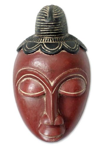 NOVICA Decorative Sese Wood Mask, Red, 'Baule Ancestor'