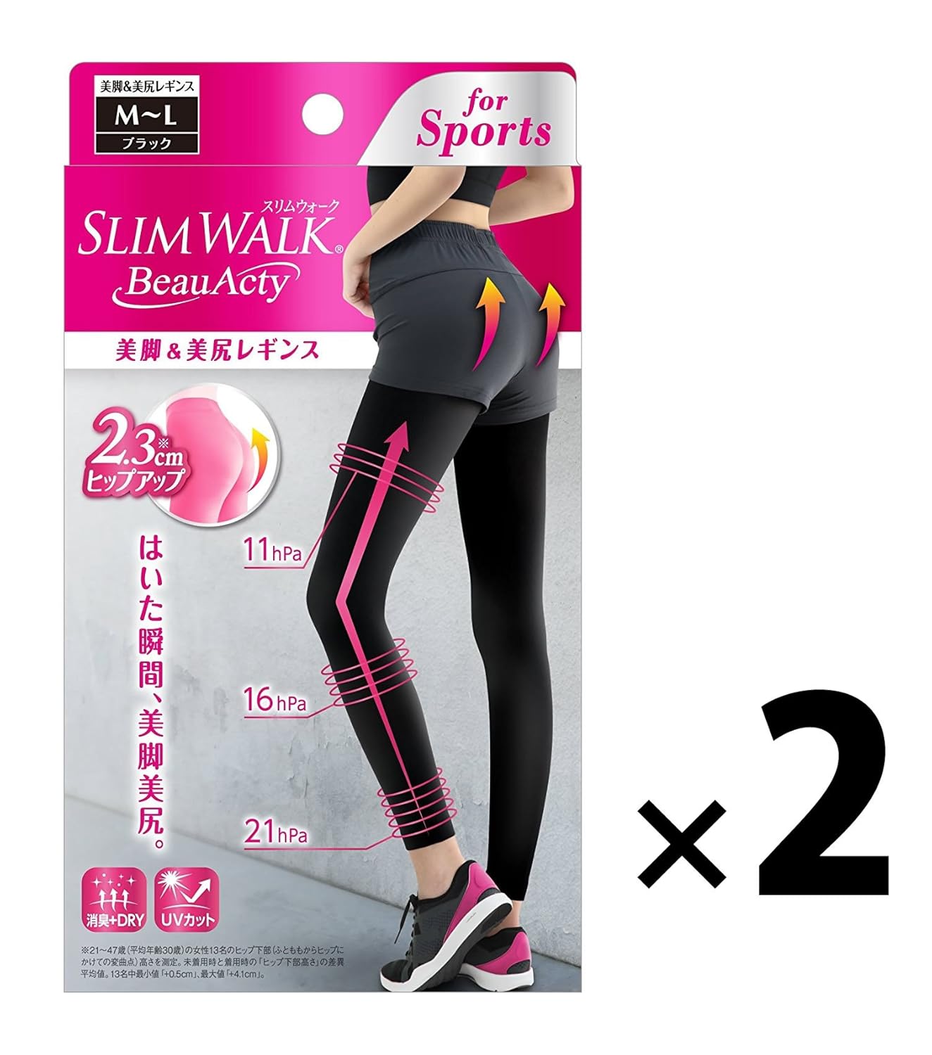 【2点セット】 ピップ スリムウォーク ビューティアクティ 美脚&美尻レギンス M~L