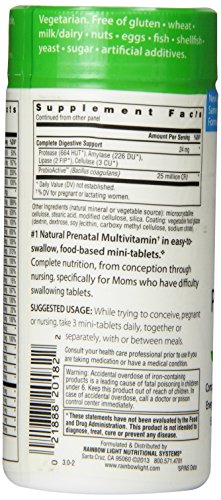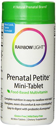 -. Binding : Health and Beauty -. Brand : Rainbow Light -. Department : Health and Personal Care -. EAN : 0021888201822 -. Feature : Gentle Prenatal Blend includes red raspberry, ginger juice and organic spirulina to support the body systems of pregnant and nursing women / Research-based protection featuring optimal nutrient potencies including 800 mg folic acid, 30 mg iron, and 800 IU vitamin D3, especially important to support rapid fetal development and bone health / Plant-sourced enzymes and 25 million CFU probiotics are gentle on the stomach and support digestion / 100% Natural / Contains no sugar, lactose/dairy, wheat, gluten or yeast -. IsAdultProduct : 0 -. IsAutographed : 0 -. IsMemorabilia : 0 -. Label : Rainbow Light -. LegalDisclaimer : * These statements have not been evaluated by the Food and Drug Administration. This product is not intended to diagnose, treat, cure or prevent any disease. ** Always refer to the manufacturer's label on the product for description, recommended dose and precautions. -. Manufacturer : Rainbow Light -. Model : 20182 -. MPN : 20182 -. NumberOfItems : 1 -. PackageQuantity : 1 -. PartNumber : 20182 -. ProductGroup : Health and Beauty -. ProductTypeName : HEALTH_PERSONAL_CARE -. PublicationDate : 2011-01-13 -. Publisher : Rainbow Light -. Size : 90 -. Studio : Rainbow Light -. Title : Rainbow Light Prenatal Petite, 800 mcg Folic Acid, 90 Tablets -. UPC : 021888201822