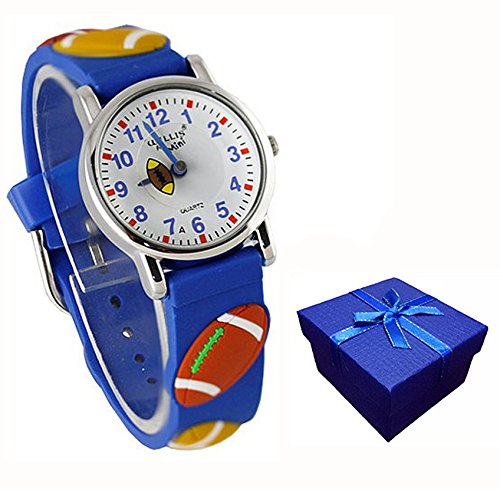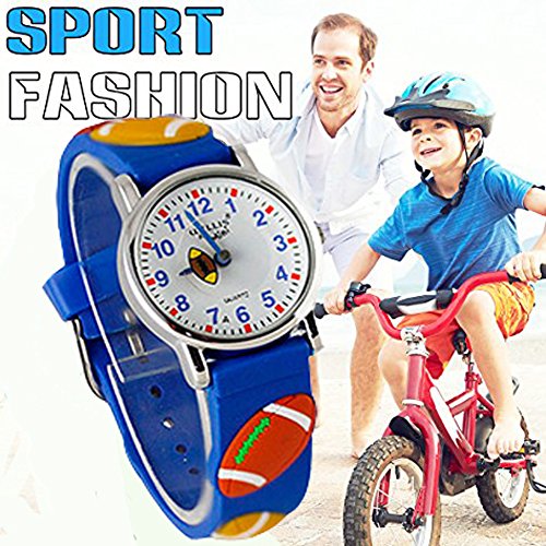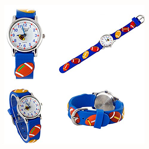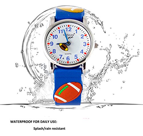 Learn to tell Time: If you are looking for a "Time Teacher" watch for Toddlers, you have found the right watch. The watch is durable and stain resistant. We insist on the use of traditional pointer&watch dial as the core design of our children watch, because we think teaching children to know the traditional clock, rather than use digital instead directly, it has very important significance. 1.EACH WATCH HAS A VERY CLEAR DIAL,PRETTY EASY TO READ TIME2.AS WELL,WE DESIGN THE "SECOND HAND" IN A FUNNY AND INTERESTING WAY,WE TRUST YOUR KIDS WILL LOVE THIS WATCH AND LOVE READING TIME!Good Choice for Kids as gift: That's good choice for kids Birthday,Holiday,Christmas Gift. It's perfect fits for 2-12 years old Kids to learning how to tell Time. If Your child is learning how to read time or understand how to tell time in a fun and engaging world effective, it's best choice for kids, they will have their "OWN WATCH". PRODUCT DETAILS: 1.Size & Weight Band length : 20cm / 7.87 in Band width : 1.4cm / 0.55 in Dial diameter : 2.7cm / 1.06 in Case thickness: 0.7cm /0.28 in Shape of the dial: Round Item weight : 33g / 1.16 oz 2.Material Mirror Surface: Highly Transparent Resin Glass Case material: Stainless steel Caseback material: Stainless steel Strap material: High quality imported silicone Buckle material: Stainless steel NOTE: Waterproof only in daily life .Splash/rain resistant. Not suitable for showering, bathing, swimming, snorkelling, water related work and fishing.Please Don't take this watch to swim or take shower. Avoid to put this watch on Too hot or Too cold place, Too much water contact will shorter this watch's life. Packaging: 1*watch 1*delicate watch box Pls check our store for more kids watches.We have dozens of kids watches for your choose!Feature