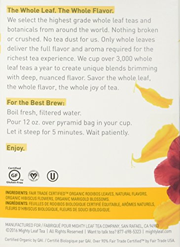 Mighty Leaf Herb Tea, Organic African Nectar, 15 Count Whole Leaf Pouch, 1.32 Ounce