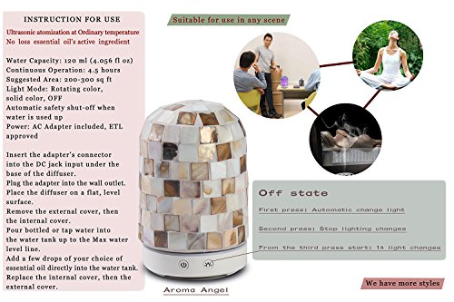 Aroma Essential Oil Diffuser Aromatherapy Humidifier 120ml sea shell mosaic glass Housing 14-Color LED Light Mute Automatic Light changing Aromatherapy machine humidifier