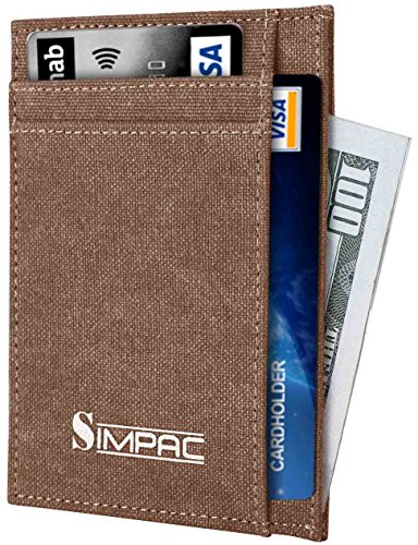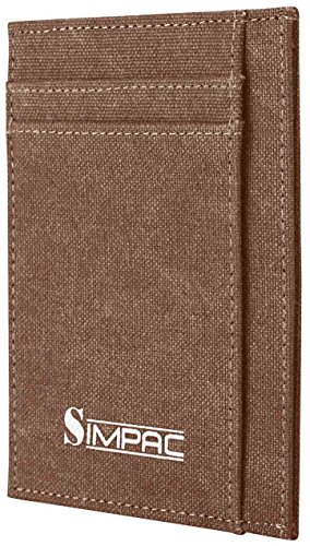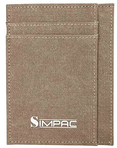 -. Binding : Apparel -. Brand : Simpac -. Department : mens -. Feature : IT'S COOL:Vintage canvas outside + super fiber leather inside = a wallet that looks cool and feels cool; / IT'S SLIM: sizing 4" X 3 1/4" X 1/8", this Simpac canvas wallet is perfect for your front or back pocket; / IT'S RFID BLOCKING: Your credit card, debit card and ID card are safe in our wallet. pls be kindly noted, many building access cards and ID baadge can not be blocked; / IT'S PRACTIAL; 6 card slots;1 Larger Card/Money/Receipt Pocket - Top Center Access / IT'S COOL: the most important feature has to be informed twice, at the very least! -. ProductGroup : Apparel -. ProductTypeName : ACCESSORY -. Title : Simpac Canvas Front Pocket Wallet Minimalist Wallet RFID Blocking Mens Slim Wallet