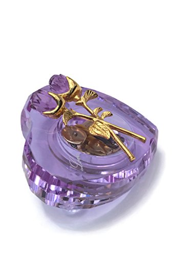- With 5 layers of cuts, this crystal shines like an exquisite gemstone. Made with the best quality solid k9 purple crystal, it's hand made into the shape of a heart with two crystal roses on top.