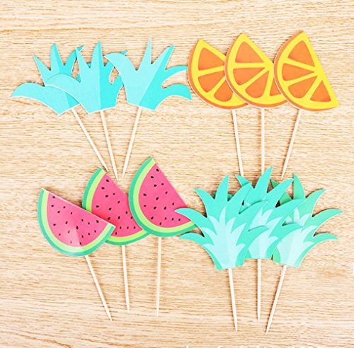 Yunko 12pcs Fresh Fruit Decorative Cake Toppers Muffin Cupcake Decorating Mold Tools Set Strawberry Pineapple Watermelon