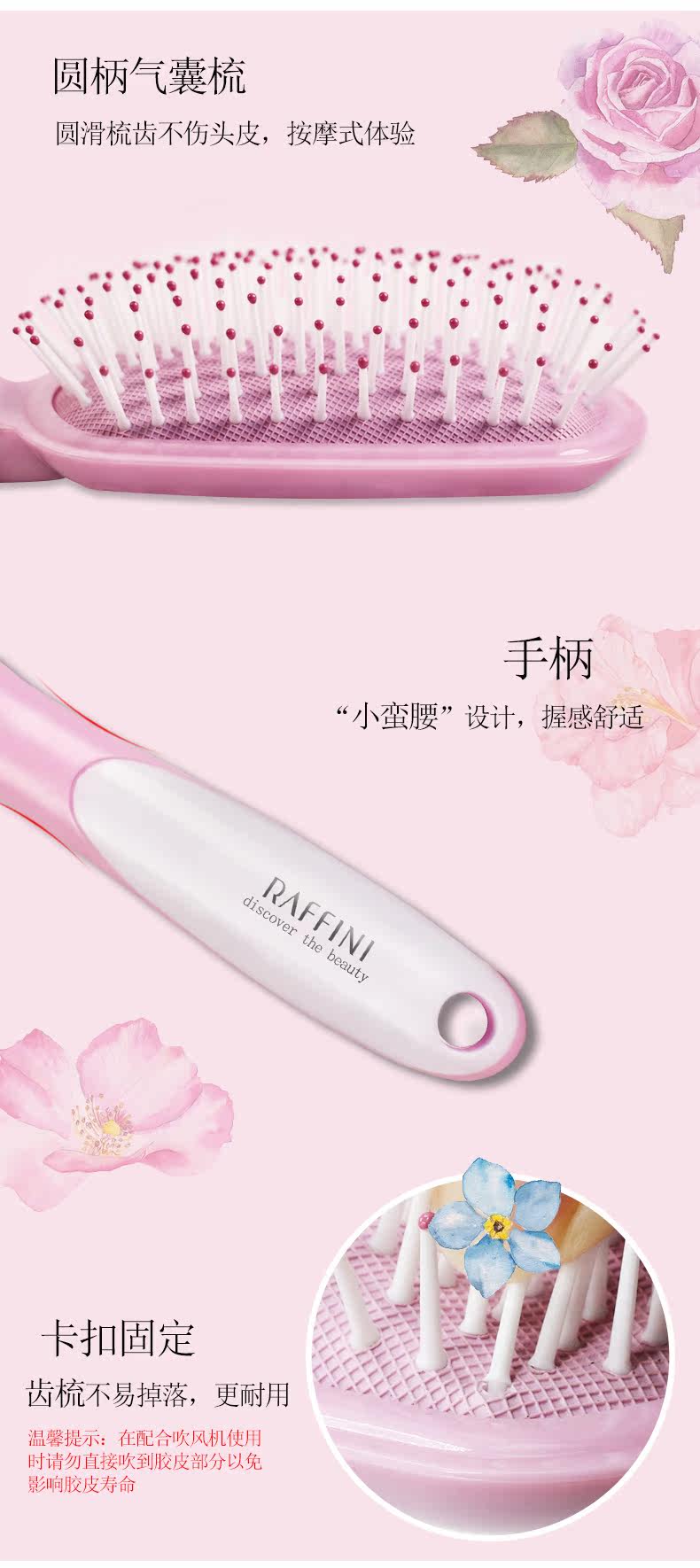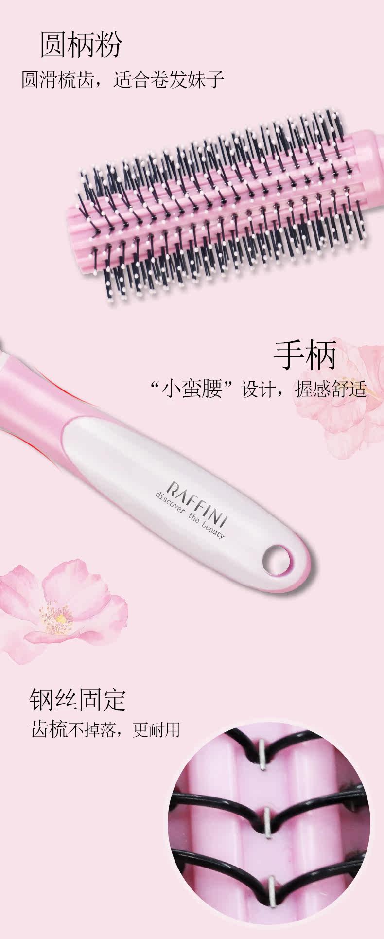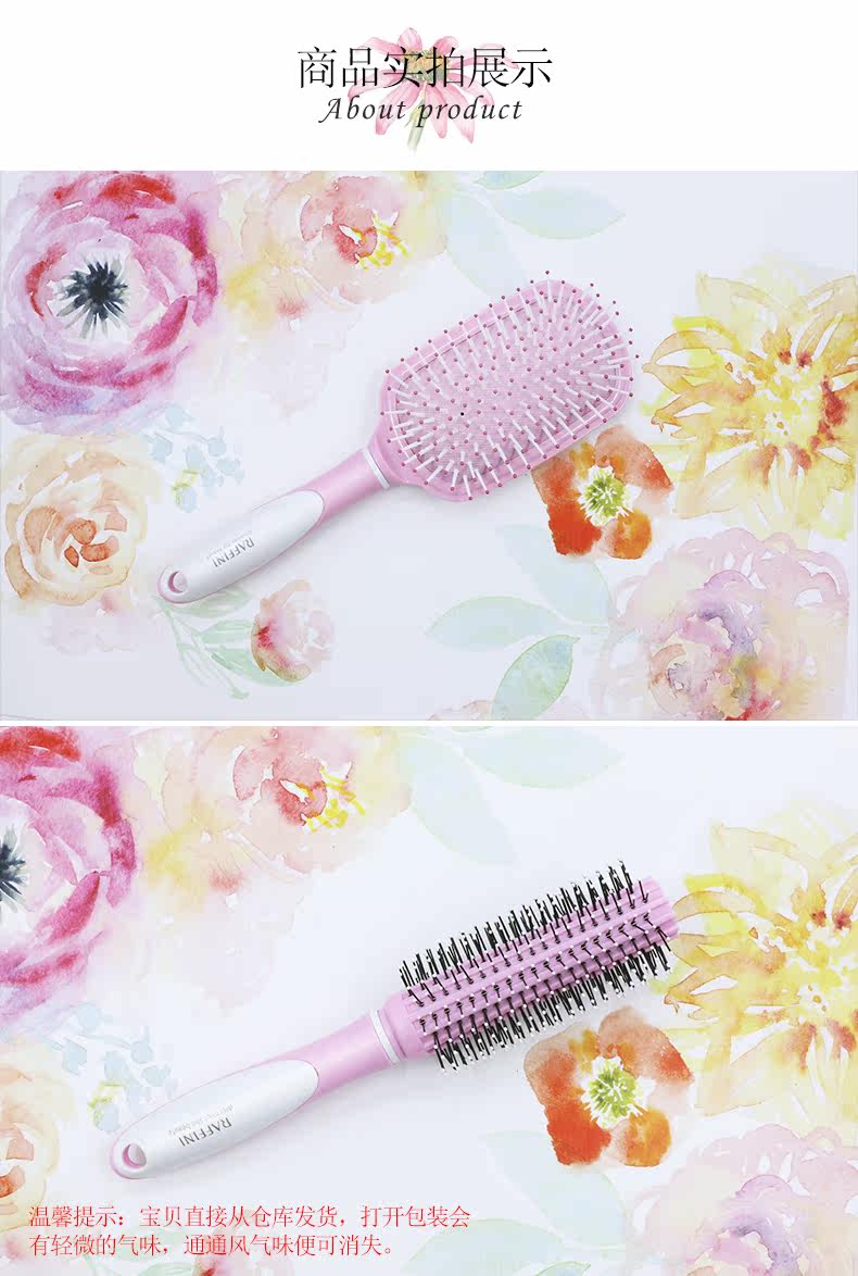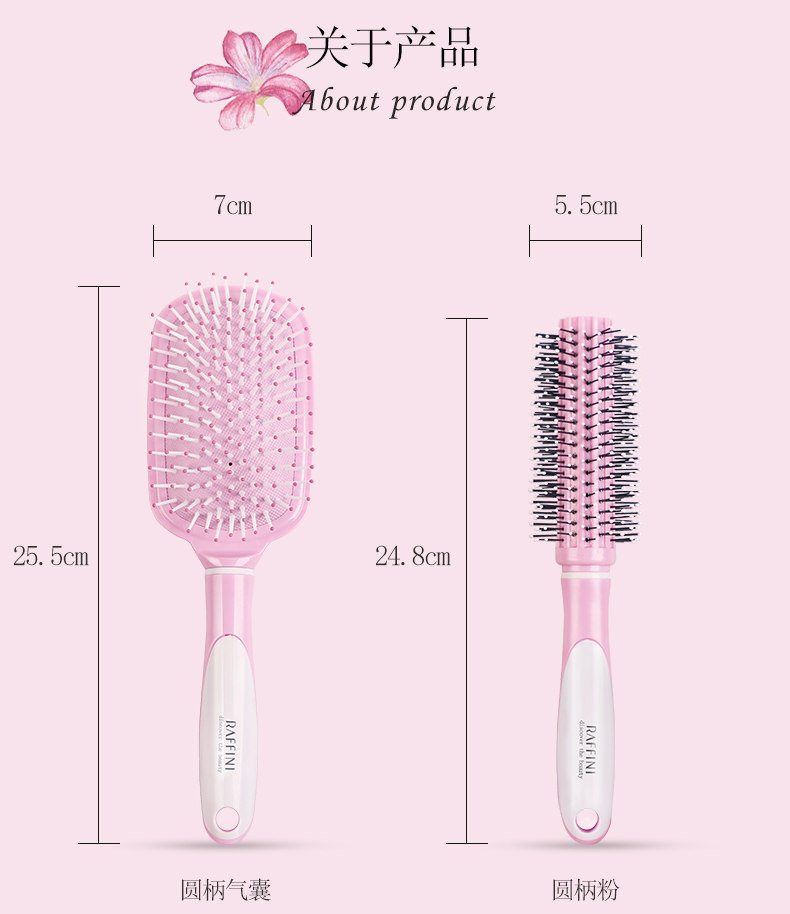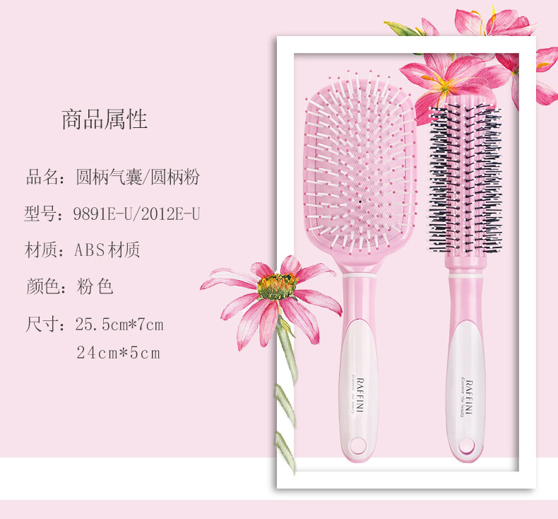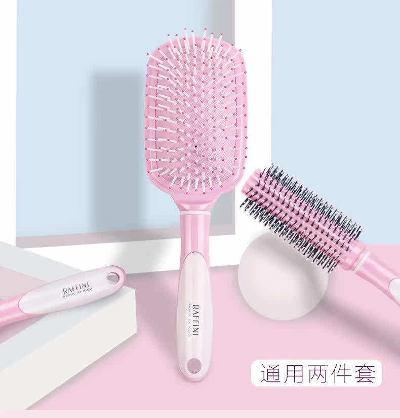 RAFFINI圆柄头梳二件套 美发护发顺发梳子塑料卷发梳 梨花滚梳