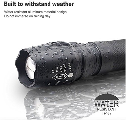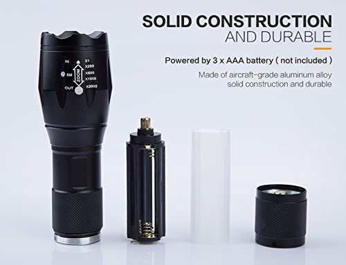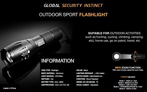 Global Security Instinct - The Original XMLT6 (800 lumens -10W) High Powered LED Flashlight - Ultra Bright Tactical Flashlight - Outdoor Water Resistant Torch with Adjustable Focus and 5 Light Modes
