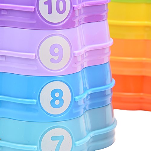 【Developmental Toys】: Stacking up these cups can not only bring a lot of fun for your baby but also can promote their color and number recognition. It is perfect for promoting their fine motor skills development.