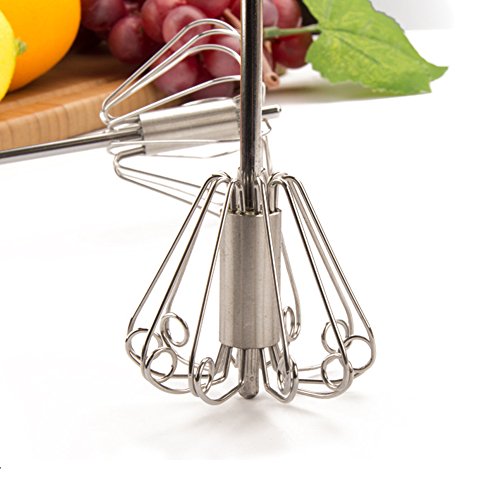 - Feature : Made of food grade stainless steel, durable, never worry about bending or breaking for regular use. / Effortless spin whisk. Just pressing and whisking. Mechanical assembly allows easy fluid motion in one push with minimal force and effort. Prevents arm and hand strains. Perfect tool for home & kitchen. / Fast mixing & blending, say goodbye to manually rotate your arm, Newness whisk will spins as you press down and counter spins as it springs back up. A great tool for mixing coffee and cocktail. / Easy to clean, just clean in soapy water, rinse and pat dry. / A great tool for kitchen. Blending, whisking, beating & stirring will be very easy. Everyone in your family will love this convenient tool, especially for children.