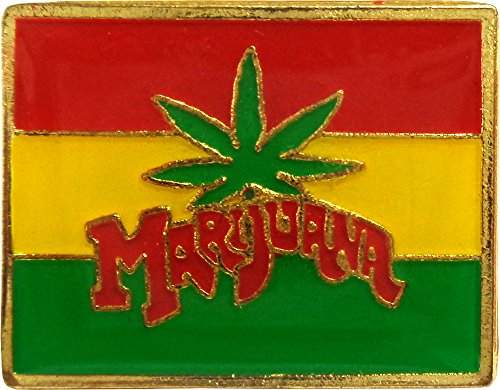 (Square Deal Recordings Supplies)/Accessories/Hair Accessories/DIRECT FROM USA/Green Pot Leaf on Tri-Color Rasta Flag Enamel Pin