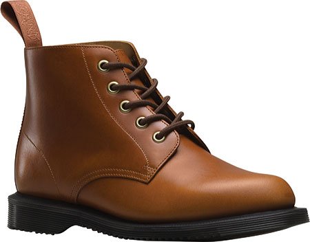 Dr. Martens 5 eye women's Emmeline boots use rounded antique eyelets, a tonal loop and plain welt in a leather with a shiny finish. Each season the Kensington collection updates classic silhouettes with new materials and extra styling refinement. With Dr. Martens hard-wearing air-cushioned sole, these boots are built to last, while self-scripted heel tags and very precise upper stitching make them a refined choice. Material: Leather.Feature