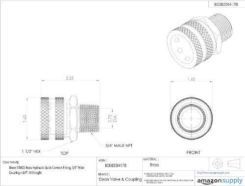Dixon STMC6 Brass Hydraulic Quick-Connect Fitting, 3/4" Male Coupling x 3/4"-14 Straight