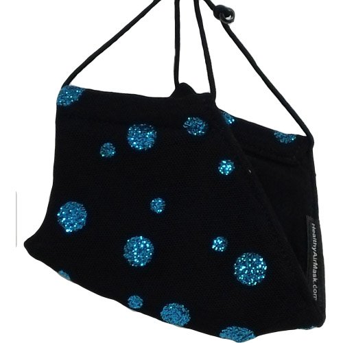 -. Feature : This M11 Black Mesh - Turquoise Glitter Dots Flu Mask protects you in style! (Available as Matching Scarf Set) / Respiratory protection from dangerous airborne particles - allergens, germs, smoke, pollen, haboobs, dust, pet dander, flu, cold and other pollutants that can cause or irritate bronchitis, respiratory illness, weakened immune systems, COPD and asthma. / Your first line of defense - fashionable, comfortable, ECO friendly, washable, re-usable and made in the U.S.A. / Made of Eco friendly fabrics: Outer: Bamboo Cotton Feather Jersey - 70% Bamboo (Viscose Rayon)/30% Cotton. Inner: 66% Bamboo/28% Cotton/6% Spandex. Size: Teen - Adult / Our masks also provide anti-bacterial and hypo allergenic qualities that others can't. Our M.E.R.V. 11 advanced pharmacuetical grade filter sandwiched between inner and outer layers rated filter adds an additional and most distinctive level of protection from molecule size pollutants that pose the greatest risk! Uses: Outdoors, traveling, wood working, general construction, remodeling, painting, grooming, power washing, sweeping, snow plowing, leaf blowing and edge trimming, lawn mowing, pet grooming, sanding, drywalling, public areas, smokey atmosphere, in the yard, attic, garage and basement.