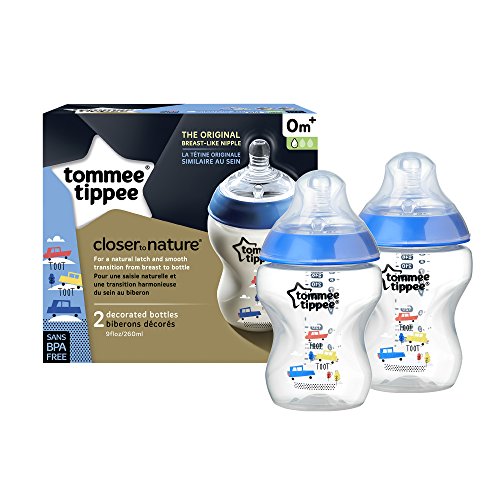 -. Binding : Baby Product -. Brand : Tommee Tippee -. Color : clear and blue -. Department : baby-boys -. EAN : 0666519225268 -. Feature : Feeding bottle has a natural feel nipple for "just like Mom" feedings / Easy latch slow flow nipple for smooth transition between breast and bottle / Optimum venting valve with slow flow nipple for less air intake and less discomfort for baby / Easy hold design and accurate feeding and measurement markings on bottle / Always BPA and phthalate free for ultimate reassurance -. Label : Mayborn Group -. Manufacturer : Mayborn Group -. Model : 522526 -. MPN : 522526 -. NumberOfItems : 1 -. PackageQuantity : 1 -. PartNumber : 522526 -. ProductGroup : Baby Product -. ProductTypeName : BABY_PRODUCT -. Publisher : Mayborn Group -. ReleaseDate : 2017-05-16 -. Size : 9 ounce -. Studio : Mayborn Group -. Title : Tommee Tippee Closer to Nature Decorated Bottle, Blue, 9 Ounce, 2 Count -. UPC : 666519225268