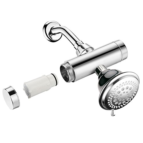 KDF (copper and zinc) is the media of choice in better quality shower filters. Depending on water temperature and flow variables, it is known to help eliminate up to 99% of chlorine and chlorine vapors from shower water. KDF also reduces exposure to Radon and Hydrogen Sulfide, discourages the growth of mold, mildew and algae, and improves water's pH Balance.