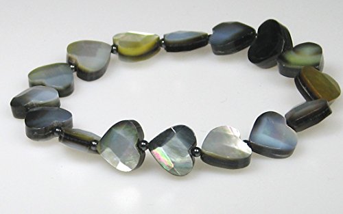 -. Title : ピーコックのテリ黒蝶貝ハートブレスレット (内径16.5cm 女性:M/男性:S)