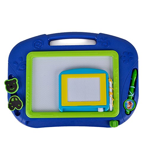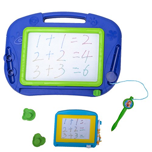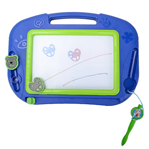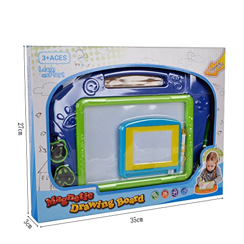 •Features Magna doodle size is good for travel,which is keep little one busy on a trip last minute.It is a toddler drawing board,let your children to express their creative side. Enhance your kid's ability to distinguish color. It can exercise your baby's hand-eye coordination. Includes a large drawing screen and a small drawing screen, easy slider eraser and 2 shape stampers. The stampers stick in the storage slots and the pen is tethered to, so it will not easily lost. It's the best partner with your children, it can stimulate a kid's thinking ability and imagination space, make the children grow up happy in learning.