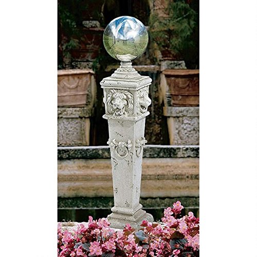Design Toscano Lion Head Gazing Globe Pillar Garden Statue