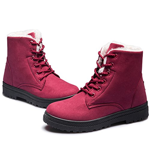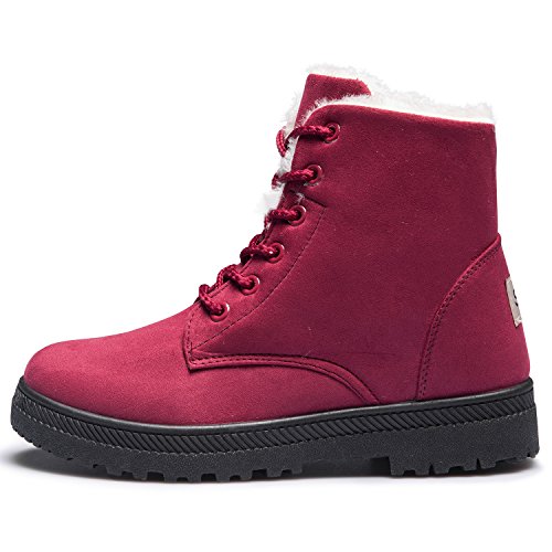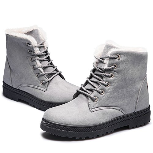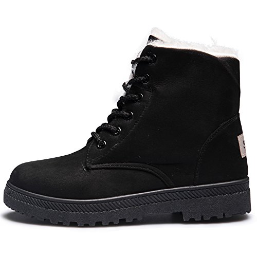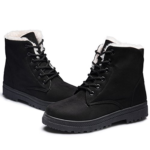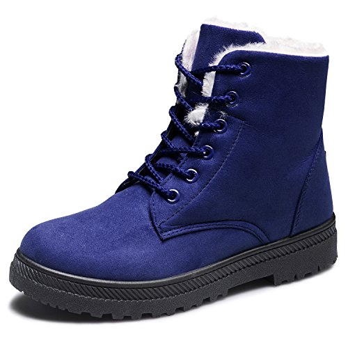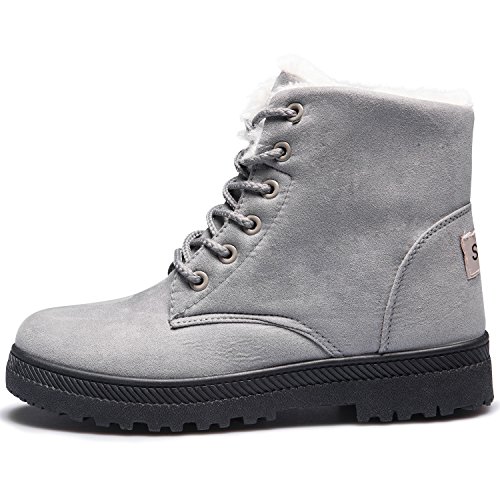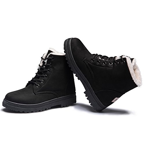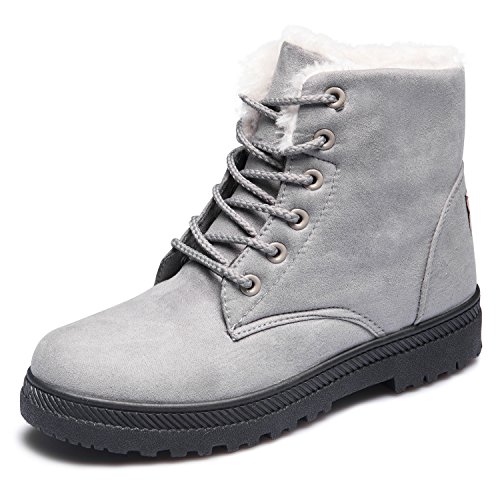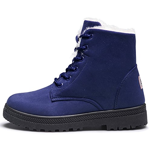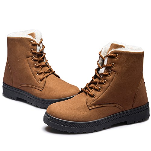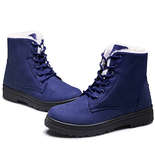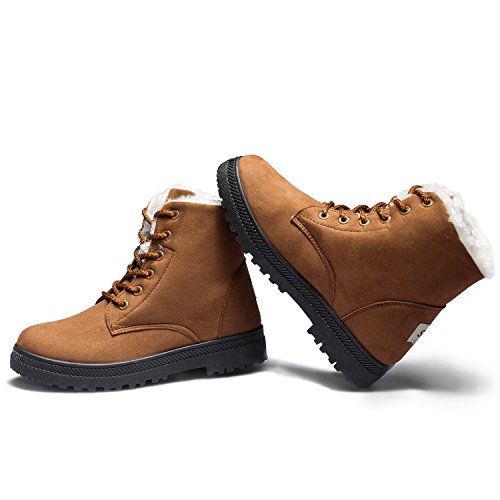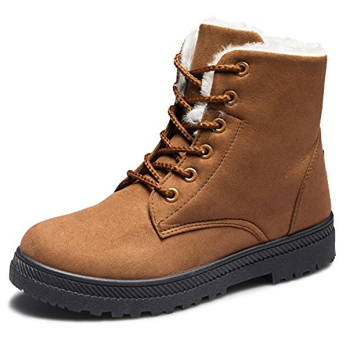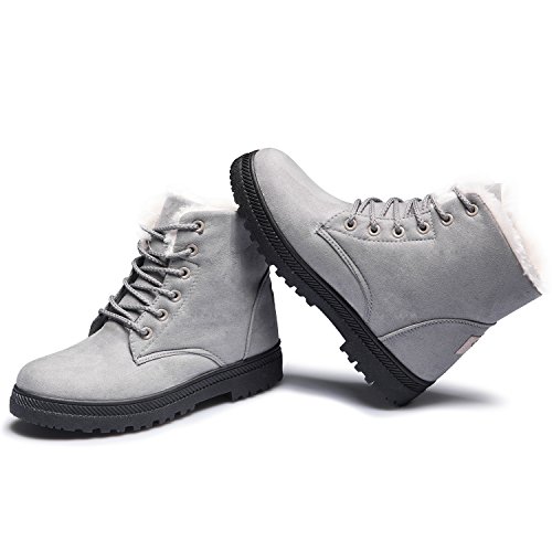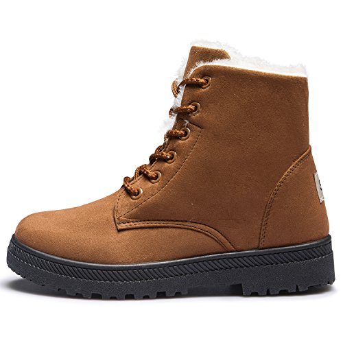 CIOR Women's Winter Warm Suede Lace Up Snow Boots Fashion Flat Platform Sneakers