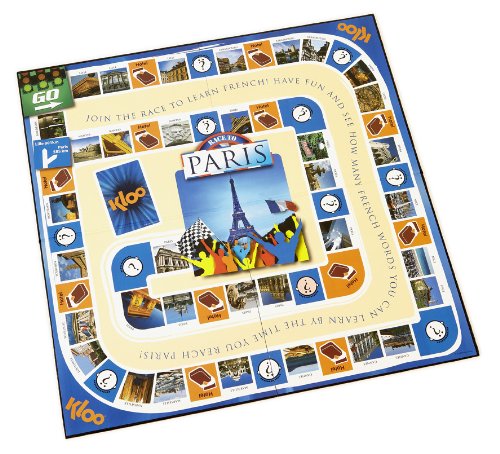 -. Binding : Toy -. Brand : KLOO Games -. EAN : 5060241630058 -. Feature : Winner ToyTalk 2011 Best Board Game / 4 decks of KLOO vocabulary cards, Game Board & pieces / Race through Nice, Lyons, Calais etc on the way to Paris / Learn hundreds of words & create thousands of sentences for points / Makes learning French fast, easy and fun -. IsAdultProduct : 0 -. Label : KLOO -. Manufacturer : KLOO -. MPN : 3197614 -. PackageQuantity : 1 -. PartNumber : 3197614 -. ProductGroup : Toy -. ProductTypeName : TOYS_AND_GAMES -. Publisher : KLOO -. Studio : KLOO -. Title : KLOO's Learn to Speak French Language Board Game - Race to Paris