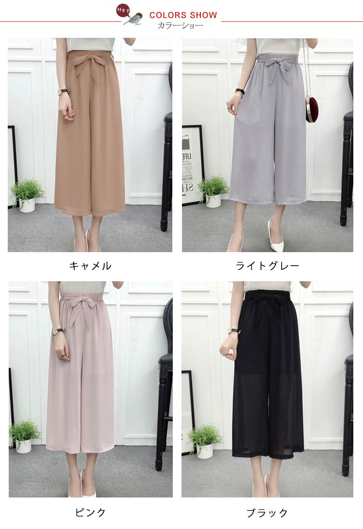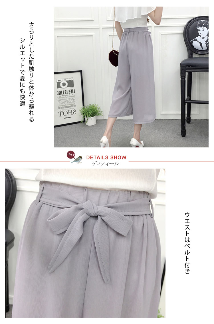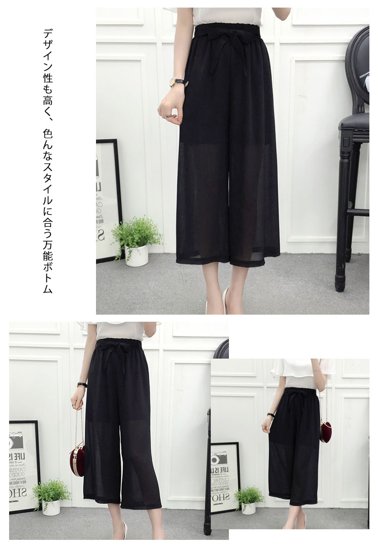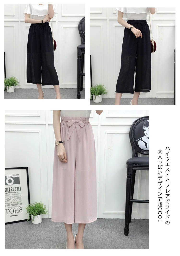 | 穿き着心地がたまらない楽チンパンツデザイン性も高く、色んなスタイルに合う万能ボトムハイウエストとフレアでワイドの大人っぽいデザインで超COOLさらりとした肌触りと体から離れるシルエットで夏にも快適 | |