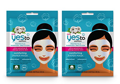 -. Feature : Yes to having a soft spot for cotton extract and cottonseed oil that help prevent irritation while gently nourishing, softening and refreshing delicate and allergy-prone skin / 6 single-use lightweight, 100% Cotton paper masks feature a 95% natural ingredient formula that is also rich in antioxidants and Aloe that help hydrate and protect skin while leaving it naturally radiant / Gently unfold mask and apply to clean skin. Adjust around eyes, nose and mouth, smoothing to fit the curves of your gorgeous face. Close eyes and relax for 10 minutes. Remove mask and dispose / This product is 95% natural and formulated without Parabens, SLS and Silicones. Leaping Bunny Certified / More great masks from Yes To include the Protecting and Soothing Bundle, Clear Skin/Acne Bundle, Hydrating and Conditioning Bundle, Detoxifying Bundle, Mud Mask Bundle, and Date Night Bundle