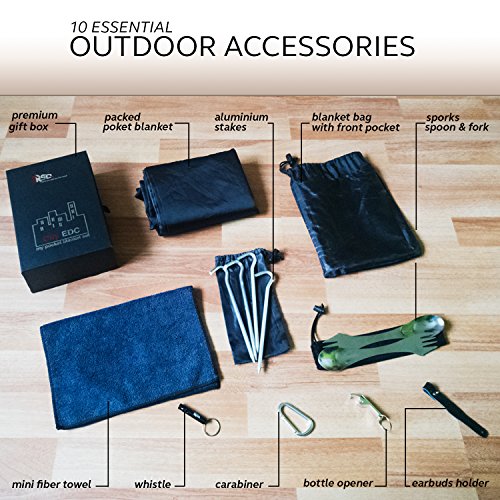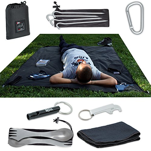 Studio : smartRSQ Factory Publisher : smartRSQ Factory Product Description WHICH IS YOUR FAVORITE OUTDOOR ESCAPE? No matter what your choice is, your Waterproof Picnic Set by SmartRSQ is always there, in your Backpack, Purse, or Car. The size (79'x 59') of our Outdoor Picnic Blanket makes the difference! You'll quickly realize that no other brands come close! Our portable blanket is waterproof, windproof, sand proof, easily cleanable, machine washable, it dries fast and it's also puncture resistant. The Waterproof Camper Blanket is also compact portable and it really fits 2-4 persons. The Bag - keeps your travel blanket safe. It has a Front Pocket to safely store and carry your phone, keys, sunscreen, or money. Additional Travel Accessories: 4 ALUMINIUM STAKES - One for every loop attached to the Beach Picnic Blanket. They are strong enough to hold all of our picnic blankets firmly in place even on windy days ; A CARABINER - Clip your lightweight, compact foldable blanket to your rucksack or backpack. It gives you extra space A WHISTLE - You can use it for fun, or in case of an emergency! A MINI FIBER TOWEL - Wipe your face, hands or body. It is super absorbent and it dries fast. 2 SPORKS - You'll have 2 spoons and 2 forks in just 2 reliable stainless steel utensils for 2 persons. EARBUDS HOLDER - It keeps your headphones, or other cables in place without having to untangle them every time. ; BOTTLE OPENER - You never find one when you need it, right? When you click "ADD TO CART" you will get the best family picnic washable blanket set on the market and 1 YEAR 100% MONEY BACK WARRANTY or FREE REPLACEMENT Get ready to Relax. Anywhere! Anytime! 0 |