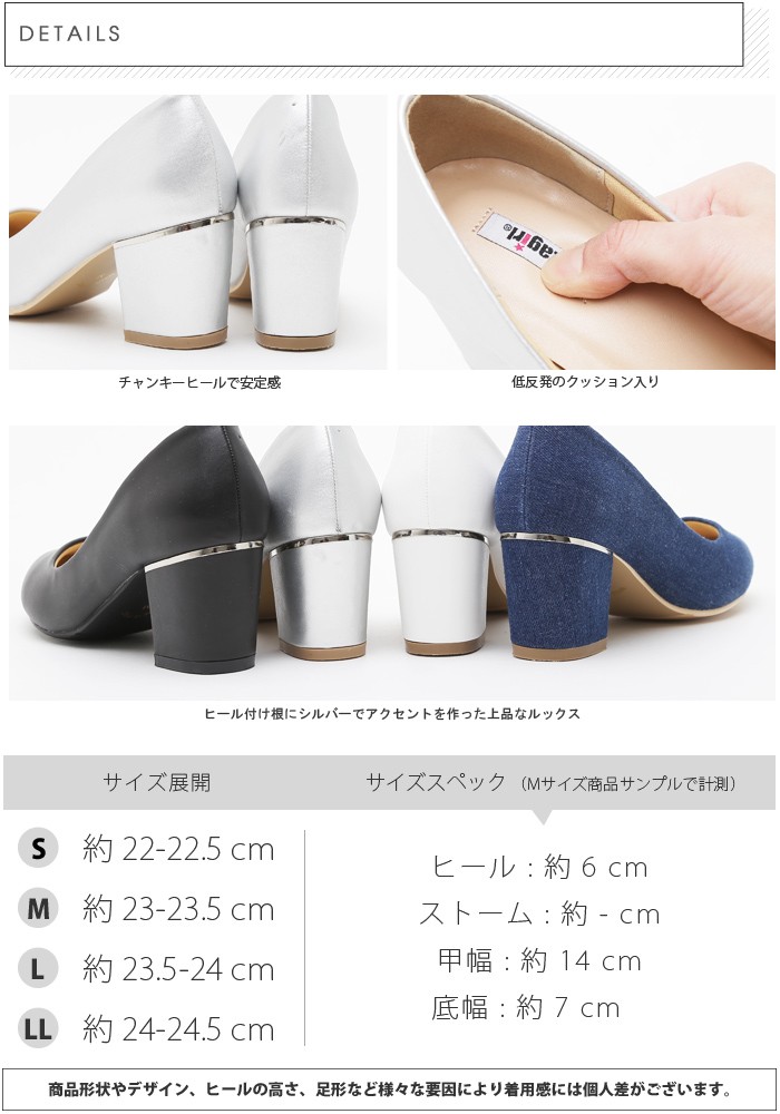 チャンキーヒールで安定感。低反発のクッション入り。ヒール付け根にシルバーでアクセントを作った上品なルックス。Mサイズ(23.0~23.5cm)attagirl / アタガール