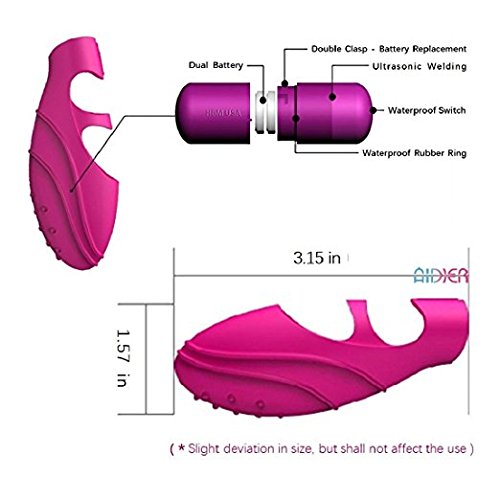 Finger Vibrator! Experience mind-glowing sex! Tips: It will be great to use together with lubricant. Instruction for battery change: 1. Pull out the vibrator from the gap in between the bullet head; 2. From the slot in the middle the of bullet head, twist and open; 3. Remove the old batteries (2 button battery are required, included), insert new batteries and tighten the slot. Specifications: Material: Silica Gel Color: Rose Battery: 2 * Button Battery (Included.) Item Size: Approx. 8.0 * 3.3 * 2.5cm / 3.15 * 1.30 * 0.98in (L * W * H) Item Weight: Approx. 25g / 0.86oz Package Size: Approx. 12.0 * 7.0 * 3.0cm / 4.72 * 7.6 * 1.18in (L * W * H) Package Weight: Approx. 62g / 2.18oz Note: This product is for individuals and couples to use, please keep hygiene before and after use. Package List: 1 * Finger Massager 0