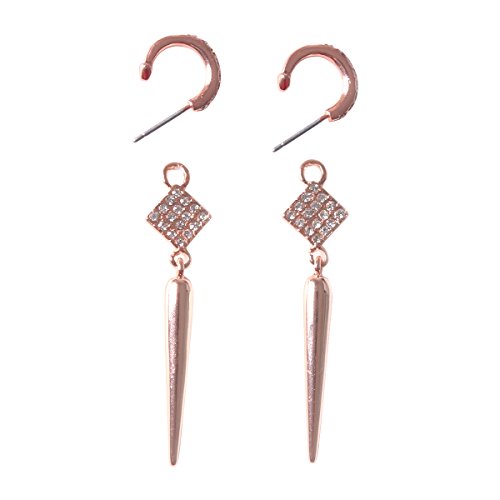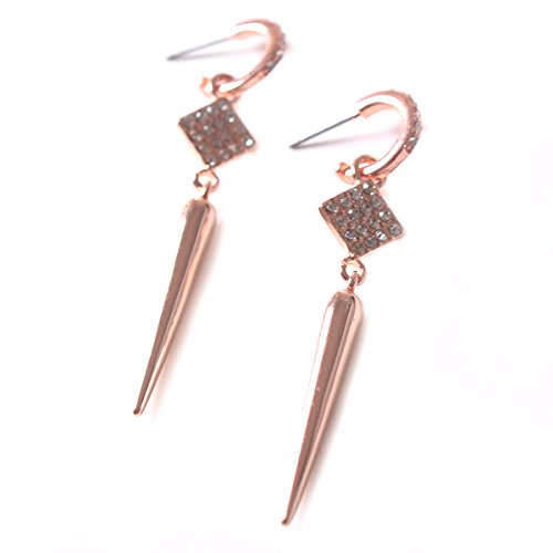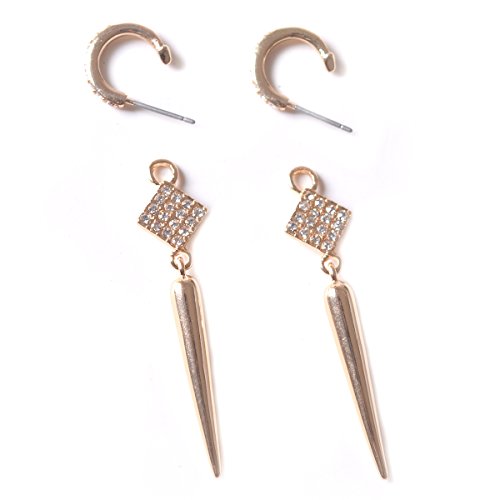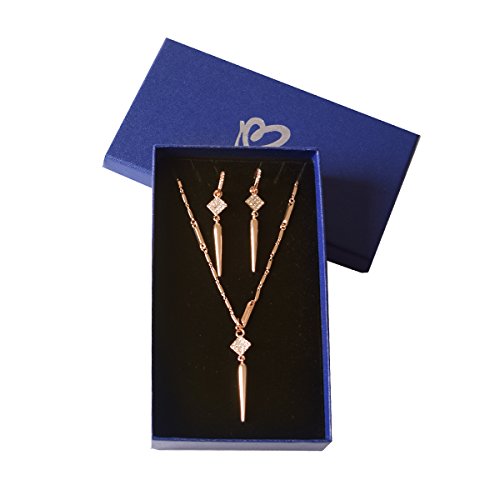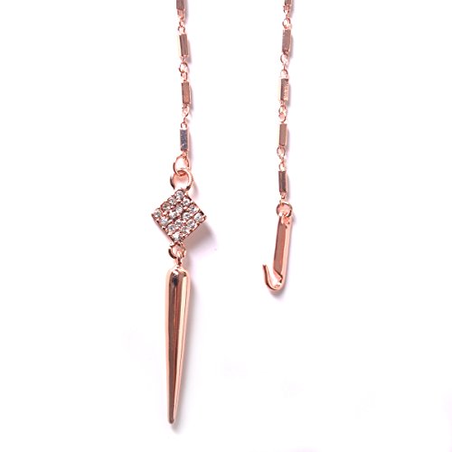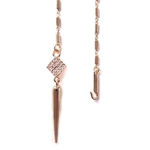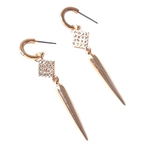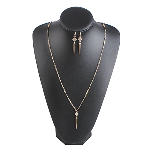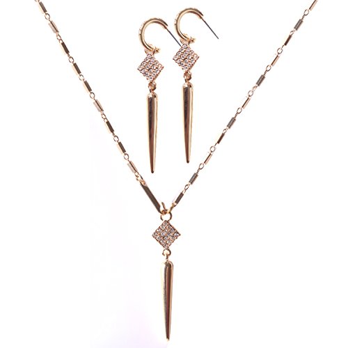 -. Feature : This ultra-chic, versatile necklace and earrings set is on every fashionistas must have for Fall. / Earrings feature a micro pave gold spear drop that detaches from a gold pave hoop. Transition from bold to subtle in an instant. / A micro pave spike dangles from a finely detailed chain that can be worn as a trendy lariat, or as a layering style. An integrated, adjustable hook closure makes this clever transformation possible. / Length of necklace: 31",pendent: length 1.2", square: 0.4". / Medium weight earrings 7/16"hoop, 2 1/8"drop