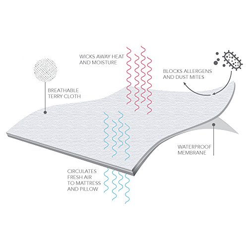 -. Feature : 100-Percent stain protection/waterproof/dust mite protection / Features 3 sided zipper enclosure / Fabric content: top surface: 80-percent cotton, 20-percent polyester; backing: 100-percent polyurethane; skirting: 76-percent polyester, 8-percent lycra, 16-percent nylon / 10-Year limited warranty / Leggett & Platt is one of the most widely recognized bed linen producers
