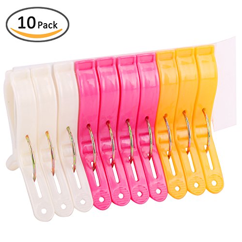 Kleanner 10 Pack Beach Bath Towel Clips,Plastic Quilt Hanging Clips Clamp Holder For Beach Chair or Pool Loungers On Your Towel From Blowing Away,Fashion Bright Color Jumbo