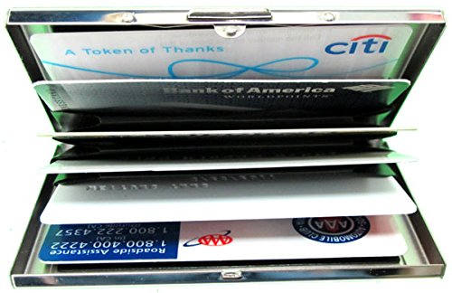 Binding : Apparel Product Description Personalized Stainless steel card case, 6 slots and holds up to 8 credit cards, RFID blocking, one touch easy open/close 3.75" X 2.5" RFlD (RADIO FREQUENCY lDENTIFICATION) chips are now being placed in U.S. Passports, credit cards and other forms of identifications.This RFID chip card emits the account number, expiration date and other information.These new leather wallets will protect your personal information from identity theft with build-in shield that blocks radio frequencies embedded in your Credit Cards and IDS. 0