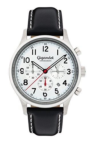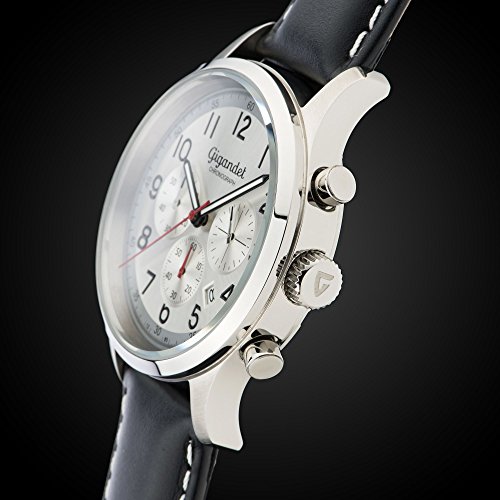 Gigandet Men's Quartz Watch Efficiency Chronograph Analogue Leather Strap Silver Black G50-002