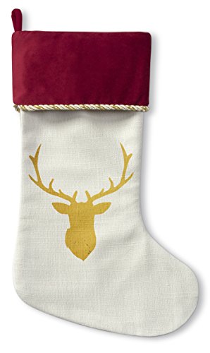 KAVKA Designs Deer Christmas Stocking, (Gold/White) - , Size: 12.5x21 - (TELAVC1083CSTR)