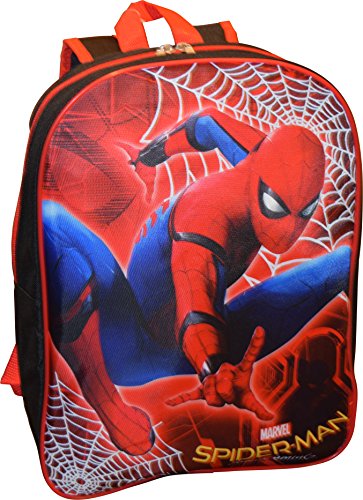 -. Feature : Made of an easy to clean and very durable polyester cordura fabric / Features one large zippered compartment for binder, books and folders and amazing Spiderman P.R.Inting on front / Original Marvel Spiderman licensed product / Adjustable padded shoulder straps for additional comfort / Backpack dimensions: 15"H x 11"W x 5"D