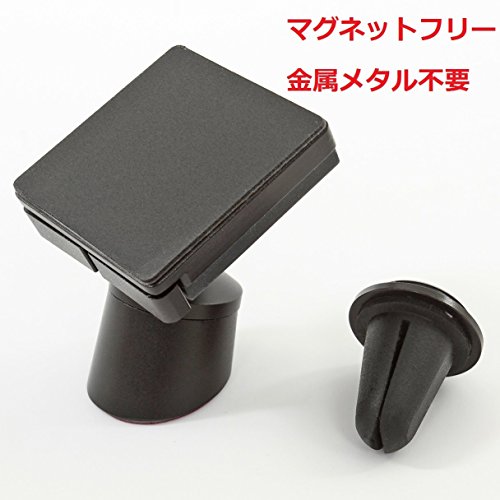 -. Feature : 【ワンタッチ次世代装着】スマホを片手で3秒押し当てるだけ。たったこれだけで最新の特殊ナノシートがスマホを強力に吸着。凸凹道でも急ブレーキをかけても、逆さにしても落ちません。それなのにはがした後はベタベタ感無し。まるでマジック。 / 【3か所で使える】車載ではシール固定でダッシュボード上に。ラバークリップ使用ならエアコン送風口に。どちらでも使える2in1。更に室内の卓上でも使える。一台三役です。※シール固定の場合はダッシュボード上のような横に平らな場所に貼って下さい。縦垂直に近い壁のような面に貼りますとホルダーが下を向く可能性があります。 / 【はさまない&貼らない】挟まないからスマホの横ボタンを押さない&マグネットじゃないからメタルプレートを貼る必要無し、スマホの電波も誤作動無し / 【スタイリッシュな高級感】高級で重厚感のあるアルミ金属製。クリップは芯の入った高級ラバー、しっかり固定するのにエアコンの羽を傷つけません。他にはない正方形の形がスタイリッシュ。別ページでシルバーカラーもございます。 / 【機種を選ばない】スマホを挟まないのでどんなスマホでもOK。正面から見えるのはスマホ画面だけ。ヘッドは360度回転で微妙な角度調節も自由自在です。別ページでシルバーカラーもございます。