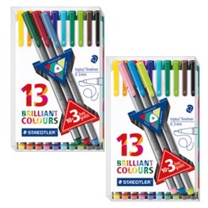 -. Binding : Office Product -. EAN : 8111161878901 -. Feature : Staedtler Triplus Fineliner 10+3 Free (13 in Total) Assorted Colours / Staedtler Triplus Color marker and pen features triangular barrel / Markers contain Dry Safe ink can be left uncapped for days without drying up / Multicolored Pens are ideal for drawing, coloring in the classroom or adult coloring books. / For fatigue-free writing and the fineliner pen features line width of approximately 0.3 mm. -. Label : Staedtler -. Manufacturer : Staedtler -. MPN : 334 TB13. -. PartNumber : 334 TB13. -. ProductGroup : Office Product -. ProductTypeName : WRITING_INSTRUMENT -. Publisher : Staedtler -. Studio : Staedtler -. Title : Staedtler triplus triangular fineliner pen case 10+3 color