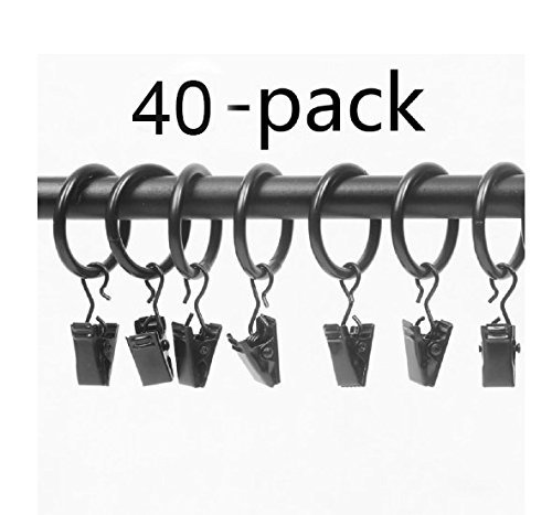 Teefy 40 pcs Window Curtain Accessory Black Matte Metal Curtain Rings with Clips